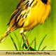 Schönes Illustrationsbild eines Gelbvogels mit einer orangefarbenen Orchideen-Blume mit einem grünen und schwarzen Schmetterling, der neben der tropischen Pflanze fliegt.auf einem Öldruckbild
