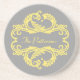 Eleganter und raffinierter Chic Damask-Untersetzer mit weichem grauem Hintergrund und einem stilvollen Damast blühe eine gelbe Verzierung. Dieses moderne Design lässt sich einfach mit Ihrem eigenen Text anpassen. Klicken Sie auf "Anpassen", um weitere Personalisierungsoptionen zu erhalten.