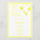 Hochzeitsmenü Schmetterlingschartendesign. Passen Sie dieses gelbe Hochzeitsmenü mit Ihren Hochzeitsdetails an. Wenn Sie Hilfe bei der Anpassung benötigen, kontaktieren Sie uns über den Link auf dieser Seite. Gelber Schmetterling und Herzdesign personalisiertes Hochzeitsmenü