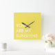Yellow Custom Text Art Sie sind mein Sonnenschein Quadratische Wanduhr