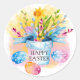 Yellow Daffodis Pink Blue Eggs Happy Easte Runder Aufkleber