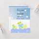 Ein niedliches Design mit kleinen gelben Enten, deren Halsbänder sich auf dem Wasser bewegen. Ein unterhaltsamer Hintergrund in weichem Blau mit Ästen und Punkten.