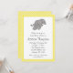Eine geschlechtsneutrale thematische Babydusche-Einladung, die auf einem gelben Polka-Punkt-Hintergrund eine niedliche Darstellung des grauen Elefanten enthält. Grafiken © Scrappin Doodles unter www.scrappindoodles.com