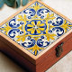 Fügen Sie Ihrer Zuhause mit unserer Golden Fleur-de-Lis Azulejo Tile Print einen Glanz mediterraner Sonne hinzu. Dieses exquisite Stück zeigt die lebendige Schönheit und die faszinierenden Designs der berühmten portugiesischen Azulejos. Die kräftigen, goldgelben und königsblauen Farbtöne werden durch die zarten Touchs Weiß und Orange unterstrichen und sorgen für ein warmes und einladendes Ambiente. Während es das Aussehen traditioneller Fliesen bewahrt, wird dieser Ausdruck ohne physische Entlastung oder Kies erstellt, um die Installation zu erleichtern. Es ist eine atemberaubende Art, jedem Raum historische Eleganz zu verleihen, und funktioniert wunderbar als Backsplash, Statement-Stück oder als einzigartiger Untersetzer für Ihren Wohnraum.