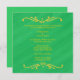 Das Malen eines gelben Fleur de lis-Randes wird auf einem blended spearmint grünen diagonalen Hintergrund gemalt, mit einem Platzhalter für Ihre Nachricht, ist auf quadratische Einladungen gedruckt. Ideal für Hochzeiten. Passen Sie den Text im Vorlagenfeld einfach an.