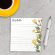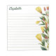 Personalisiertes florales Notizblock mit praktischen Linien und Ihr Name in einem grünen Skript und gelben Blumen auf der rechten Seite des Notizbuches. Abend Primrose Notizblock mit einem ausgekleideten Papier und personalisiert mit Ihrem Namen in einem charmanten grünen Drehbuch. Personalisiertes Notizblock mit Illustrationen von gelben Blumen, grünen Blätter und Blume.