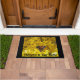 Auf dieser Türmatte befindet sich ein Foto der gelben Forsythia-Blüten mit einem Monarchschmetterling.