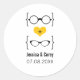 Quirky und schicke geeky Brillen Hochzeitskleber mit einem gelben Herz, flankiert von zwei Paaren geeky Brille, einem männlichen Paar und einem mädchenhaften Paar, das den Bräutigam und die Braut repräsentiert. Diese unschlagbaren, aber raffinierten Aufkleber sind perfekt für Ihre nerdige Hochzeit! Einfach zu anpassen, fügen Sie einfach die Details Ihres großen Tages in den Textfeldern zur Verfügung gestellt. Klicken Sie auf den Button "Anpassen", um weitere Personalisierungsoptionen zu finden.