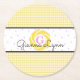 Yellow Gingham Mit Monogramm Runder Pappuntersetzer