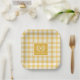 Yellow Gingham Monogram Wappen Custom Pappteller