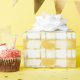 Yellow Gold White Plaid Stripes Birthday Geschenkpapier