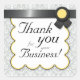 Yellow & Gray Damask "Danke für Ihr Geschäft" Quadratischer Aufkleber