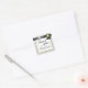 Elegante Business-Aufkleber / Umschlag Aufkleber mit einem hellgrauen und weißen Damast-Muster und einem schwarzen Band-Design mit gelb oben.