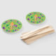 Feiern Sie Mardi Gras mit diesen Handfächern in lebhaften Gelb-, Grün- und lila-Farben auf dunkelgrünem Hintergrund