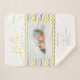 Yellow Grey Zigzag Stripes Hello World Quote Newborn Unisex Announcement Photo Sherpa Blanket.