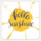 Yellow HandDrawn Sun Hello Sunshine Image Text Art Quadratischer Aufkleber