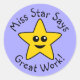 Ein gelber, glücklicher Cartoon-Stern. Der Text lautet "Miss Star Says Great Work!" und kann für einen individuelle Name/eine Nachricht geändert werden. Ideal für Lehrer als Belohnung für Schüler.