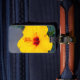 A close-up photograph captures the intricate details of a vibrant yellow hibiscus flower. The flower's petals are soft and delicate, with a slightly ruffled texture. The center of the flower is a deep red, contrasting beautifully with the bright yellow. The flower's stamen, a cluster of thin, golden filaments, extends from the center, adding to the flower's intricate beauty.