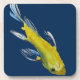 Von einem originalen Gemälde in Aquarellfarbe von Sacha Grossel aus einem gelben japanischen koi in frei asiatischem Stil gemalt Pinsel. Dieses dekorative und dekorative Fischkissen kann Set vor einem individuellen Hintergrund sein - hier in traditioneller japanischer Marineblau-Farbe. Guter Feng Shui - Dieses japanische Küchenzubehör ist für Koi- und Fisch- und japanische Kunstliebhaber überall