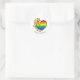 Gelber Regenbogen Klassischer Rundaufkleber für Labrador Besitzer. Adorable Yellow Labrador mit einem Regenbogenherz in seinen Armen. Dieses Design ist eine Hommage an Diversity- und Regenbogenstolz und es ist auch nur ein niedliches Labrador-Design. Whimsy und lustige Labrador Retriever Hund Cartoon von Naomi Ochiai aus Japan erstellt.