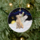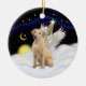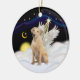 Ein gelber Labrador Retriever Engel schwimmt in den Nachtwolken des Himmels.