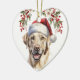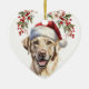 An der Vorderseite dieses Holiday-Ornament befindet sich das Bild eines wunderschönen gelben Labrador Retriever Hundes. Der Hund trägt einen rot-weißen Hut des Weihnachtsmanns, und über ihm hängt ein heiliger und roter Beerenkranz. Auf der Rückseite ist eine Wiederholung der heiligen Kranz, und roter Text, der sagt MERRY CHRISTMAS". Es gibt zusätzliche Textfelder, die Sie anpassen können. Schauen Sie sich auch andere Labrador-Hundebilder und Produkte an.