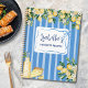 Organisieren Sie Ihre Rezepte mit unserem Rezept für gelbe Zitronenfrüchte und blaue Streifen. Mit der Aquarelldarstellung der SommerZitrone mit femininen ästhetischen Details, geeignet als Brautjungschenk oder Familienkochbuch.