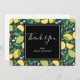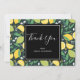 Vielen Dank Karte mit einem hübschen Muster mit Zitronen und Limonen Früchten mit Stalks von Blätter Set auf einem dunkelgrünen Hintergrund.