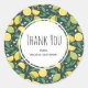 Vielen Dank an Aufkleber mit einem niedlichen Muster mit gelben Zitronen und grünen Limonen Früchten mit Stalks von Blätter Set auf einem dunkelgrünen Hintergrund.