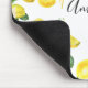 Ein Mousepad mit niedlichem Zitronenmuster mit grünen Blätter und frisch geschnittenen Zitronenscheiben. Ein weißer Kreis, oben mit dem Text, der sich darin befindet.