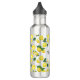 Wasserflasche mit niedlichem Zitronenmuster mit grünen Blätter und frisch geschnittenen Zitronenscheiben. Personalisieren Sie mit einem Namen in einem weißen Kreis.