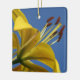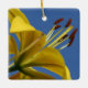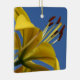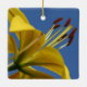 Nahes Foto einer schönen gelben Lilie gegen einen klaren blauen Himmel.