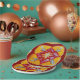 Papier Teller mit handgemalten Mandala Design - Frieden und Einheit - Blume Muster in der Mitte - 4 Personen rund - abstrakte Kunst - Rot, Gelb, Rosa, Silber. Für alle Yogafreunde, Meditation und Freireister.