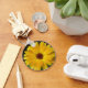 Dieser wunderschöne Schlüsselanhänger zeigt ein detailliertes Foto eines gelben Marigold mit dunkler Mitte. Das Foto wurde mit Makrofotografie aufgenommen. Sie können all die kleinen Wassertropfen sehen, die auf den Blättern dieser exquisiten Blume sitzen.