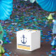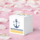 Gelbe und marinebblaue Wasserstreifen mit Anker und Monogramm.