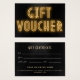 Ein hellgelbes Deko Neonzeichen Design auf einem schwarzen Metall Textur Hintergrund. Dieser moderne, trendige Geschenkgutschein oder Geschenkgutschein verkündet mutig "Geschenkgutschein" in neonfarbenen Schildern in hellgelb und ist perfekt für Ihre treuen und neuen Kunden. Hinweis: Der Neoneffekt kommt am besten auf glänzend bedrucktem Papier zum Vorschein.