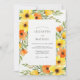 A vibrant display of cheerful yellow and warm orange blossoms cascades across this design, interspersed with delicate green foliage. This artwork evokes a bright and lively springtime mood, perfect for a joyful occasion.