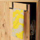 This kitchen towel features a flowing pattern of organic yellow swirls layered over soft beige and subtle gray accents, creating a smooth, contemporary abstract aesthetic.