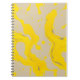 This notebook features a flowing pattern of organic yellow swirls layered over soft beige and subtle gray accents, creating a smooth, contemporary abstract aesthetic.