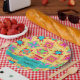 Für einen Geburtstag für ein Quilter - servieren Sie diese Papiertafel mit den anpassbaren Worten "Happy Birthday" und personalisiert mit ihrem oder seinem Namen. Diese Party Platte kombiniert beliebte Quiltblöcke mit einzigartigen Blöcken und bildet so ein Quilt-Design mit lebendigen und dynamischen Farben auf einem warmen gelben Hintergrund. Ein türkisfarbenes, aquamarines blaues Bar und Emblem geben den passenden Ort für die Wörter. Die Patchwork-Blöcke sind mit Sternen, Applique, Pinwheel, Blockhütte und anderen beliebten Quiltblöcken ausgestattet. Kleine Blume und blaue Punkte befinden sich im Hintergrund zwischen den geworfenen Blöcken. Diese Quiltkunst stammt aus dem Stoff- und Quiltdesigner Phyllis Dobbs und ist in diesem Laden für die Produktkoordination verfügbar. Vollständig anpassbar - Ändern Sie die Worte für ein Quilt Meeting oder Event.