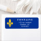 Zeigt eine gelbe Lilie (fleur de lys) auf blauem Hintergrund mit Familienname und Adresse. Personalisieren und personalisieren Sie den Namen und die Kontaktinformationen. Für Einwohner von Quebec in Kanada und Kanadier. Die Lilie ist in der Provinzfahne von Quebec enthalten und von den patriotischen Quebecers leicht anerkannt.