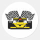 YELLOW RACE CAR RUNDER AUFKLEBER