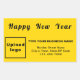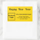 Alles Gute zum neuen Jahr! Wir wünschen Ihnen mehr Umsatz in diesem Jahr! Dies ist einer der besten Feiertage des Jahres, um Ihr Unternehmen zu werben oder Ihren Markennamen für Kunden zu fördern. Suchen Sie übrigens einen Aufkleber, den Sie als Marketing-Material für Ihre Firma verwenden können, um Ihren Markennamen für Kunden zu werben oder dieses neue Jahr als Produktlabel zu verwenden? Bitte sehen Sie diesen gelben Rechteck Aufkleber mit Neujahr Gruß. Es könnte dir gefallen. Schriftart ist schwarz. Passen Sie es an und nutzen Sie es, um Markenbewusstsein zu schaffen. Um diesen Aufkleber anzupassen, laden Sie Ihr Firmenlogo hoch, geben Sie Ihren Firmennamen, Ihre Adresse und Telefonnummer ein und Karo das Erscheinungsbild. Wenn Ihnen das Aussehen gefällt, können Sie jetzt Ihre Bestellung aufgeben. Wenn Sie das Logo und die Texte so verändern müssen, dass sie auf diesen Aufkleber oder auf andere Formen und Größen passen, die Sie auswählen, ändern Sie bitte das Design-Tool. Sie können auch andere, Ihren Wünschen entsprechende Änderungen im Designwerkzeug vornehmen, wie z.B. das Ändern der Aufkleberfarbe, der Schriftart und des Schriftartes.