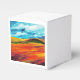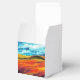 Farbenfrohe abstrakte Hügellandschaft und Himmel in Gelb-, Rot-, Grün- und Blautönen.