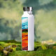 Farbenfrohe abstrakte Hügellandschaft und Himmel in Gelb-, Rot-, Grün- und Blautönen.