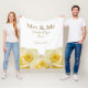 Yellow Rose Mrs. & Mr. Bridal Couple Wedding Geschenk Fleece Blanket. Personalisierte Hochzeitsdecke mit einem trendigen Drehbuch mit hübschen gelben Rosen. Passen Sie den Text an und kreieren Sie ein einzigartiges knuddeliges Hochzeitsgeschenk mit den Namen der Braut und des Bräutigams, dem Hochzeitstag und dem Hochzeitsort.