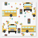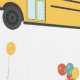 A cute hand drawn illustration of a yellow school buses, traffic lights and balloons. A school bus party theme for boys and girls who love school buses, trucks, school or transportation. An ideal children yellow school bus party theme, simply customize and make it your own!