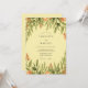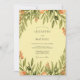 This design features a serene botanical arrangement set against a soft pale yellow backdrop. Lush olive branches with verdant leaves and small green fruits are positioned around the edges. Delicate peach-toned berries add a touch of warmth to the Mediterranean-inspired aesthetic. The watercolor style evokes a fresh, organic mood for a bright summer event.