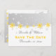 Gelbe, silbergraue, weiße Schneeflocke Hochzeit Save the Date Postcard, mit einer gewölbten Band in silbergrau mit Sternen und gelben eleganten Schneeflocken. Text in gelb, grau. Ein stilvolles Design, das perfekt für Ihren Winter, Dezember oder Weihnachten Hochzeit ist. Modernes und zeitgenössisches aber für eine traditionelle Hochzeit geeignet. Dieses elegante Design kann für andere besondere Anlässe wie Verlobungen oder Jubiläen verwendet werden.