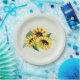 Teller aus Papier mit einem hübschen Blume-Bouquet mit fröhlichen gelben Sonnenblumen und grünen Blätter. Frisch und lustig.